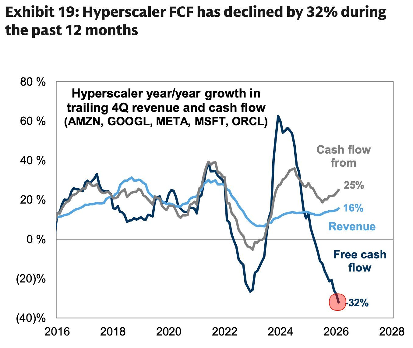 The free cash flows of hyperscalers have declined significantly over the past year.