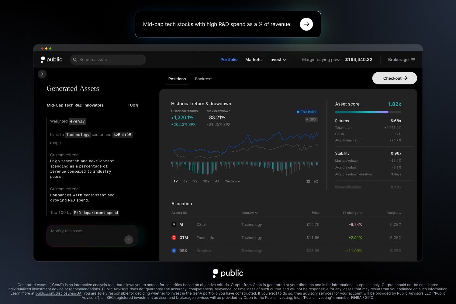 Public Disclosures: Paid endorsement. Brokerage services provided by Open to the Public Investing Inc, member FINRA & SIPC. Investing involves risk. Not investment advice. Generated Assets is an interactive analysis tool by Public Advisors. Output is for informational purposes only and is not an investment recommendation or advice. See disclosures at public.com/disclosures/ga. Past performance does not guarantee future results, and investment values may rise or fall. See terms of match program at https://public.com/disclosures/matchprogram. Matched funds must remain in your account for at least 5 years. Match rate and other terms are subject to change at any time.