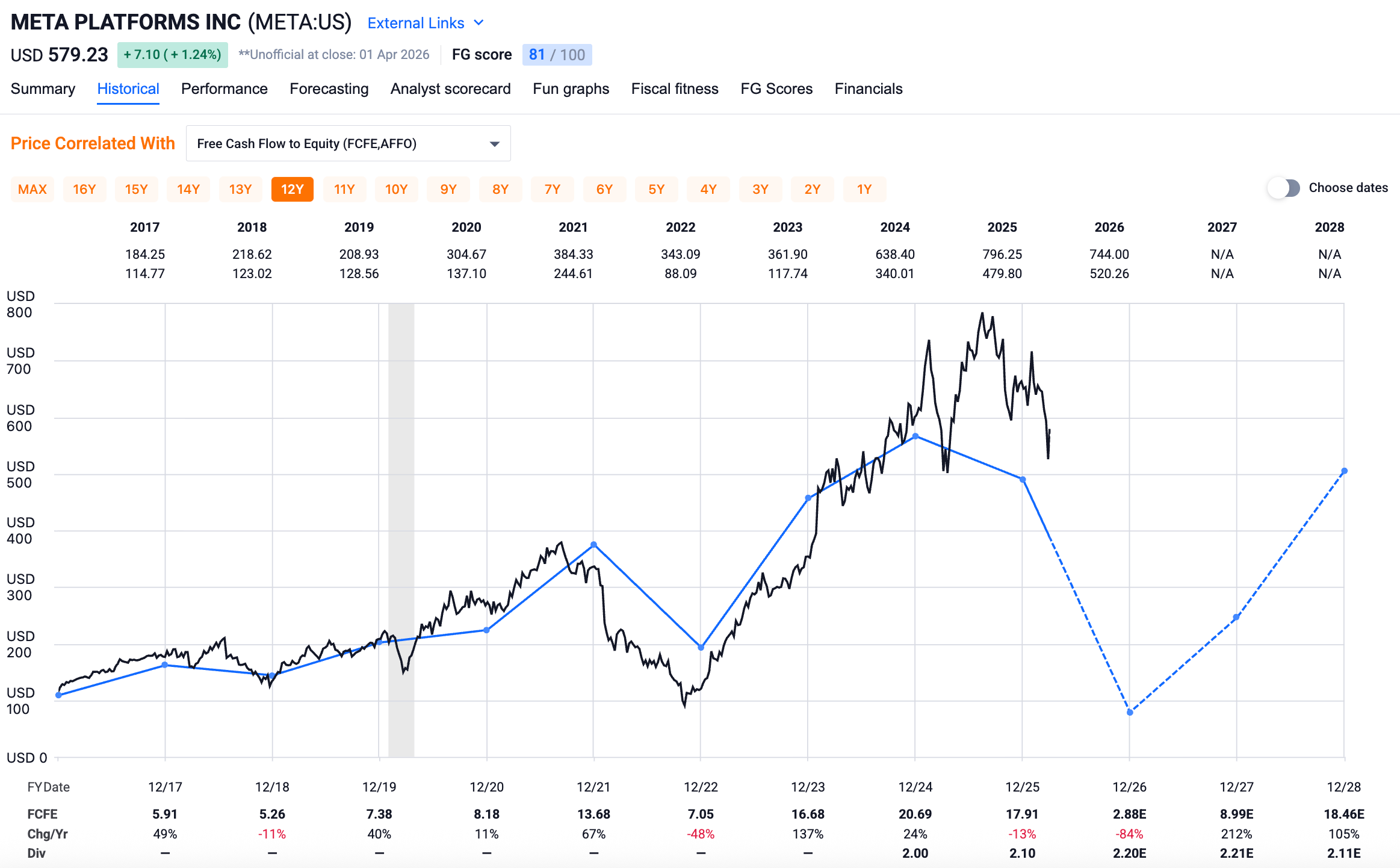 Meta is a wonderful example of “predict the cash flow, predict the stock price.” Below is a graph illustrating the correlation between their stock price and their forecasted free cash flow. I’m sure you see the same pattern I do. I’m not saying Meta’s stock price is going to $80 / share — but the correlation is real.