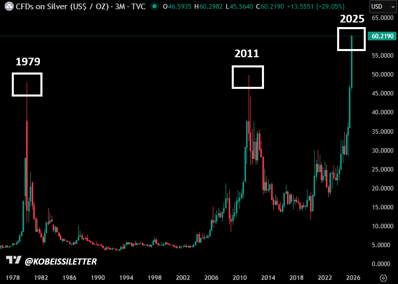 And the price action is confirming it: Silver is now on track for its strongest 12-month gain since 1979, a period defined by surging inflation and a massive flight to hard assets.